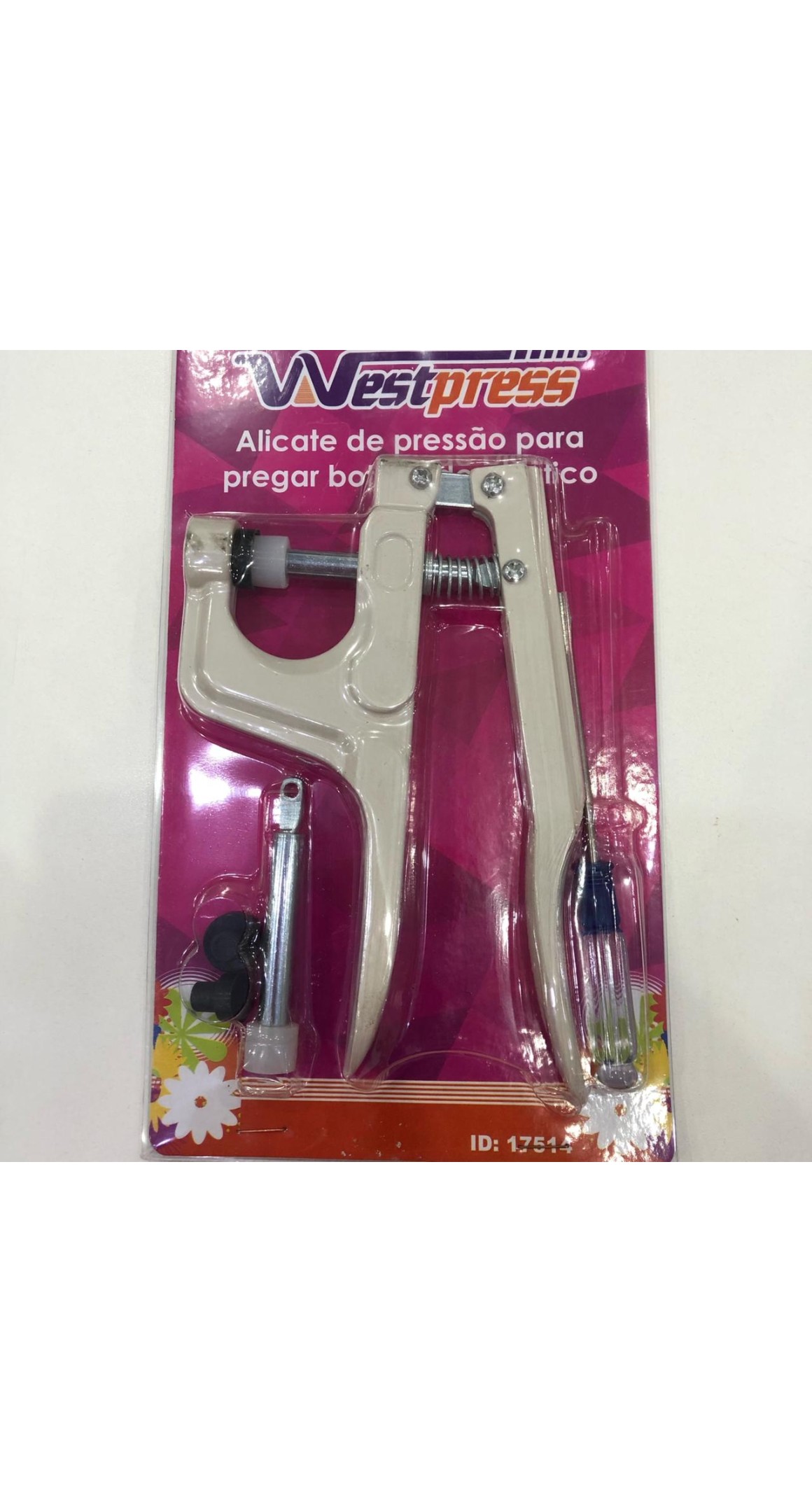 Alicate de pressão, utilizado para aplicar botões