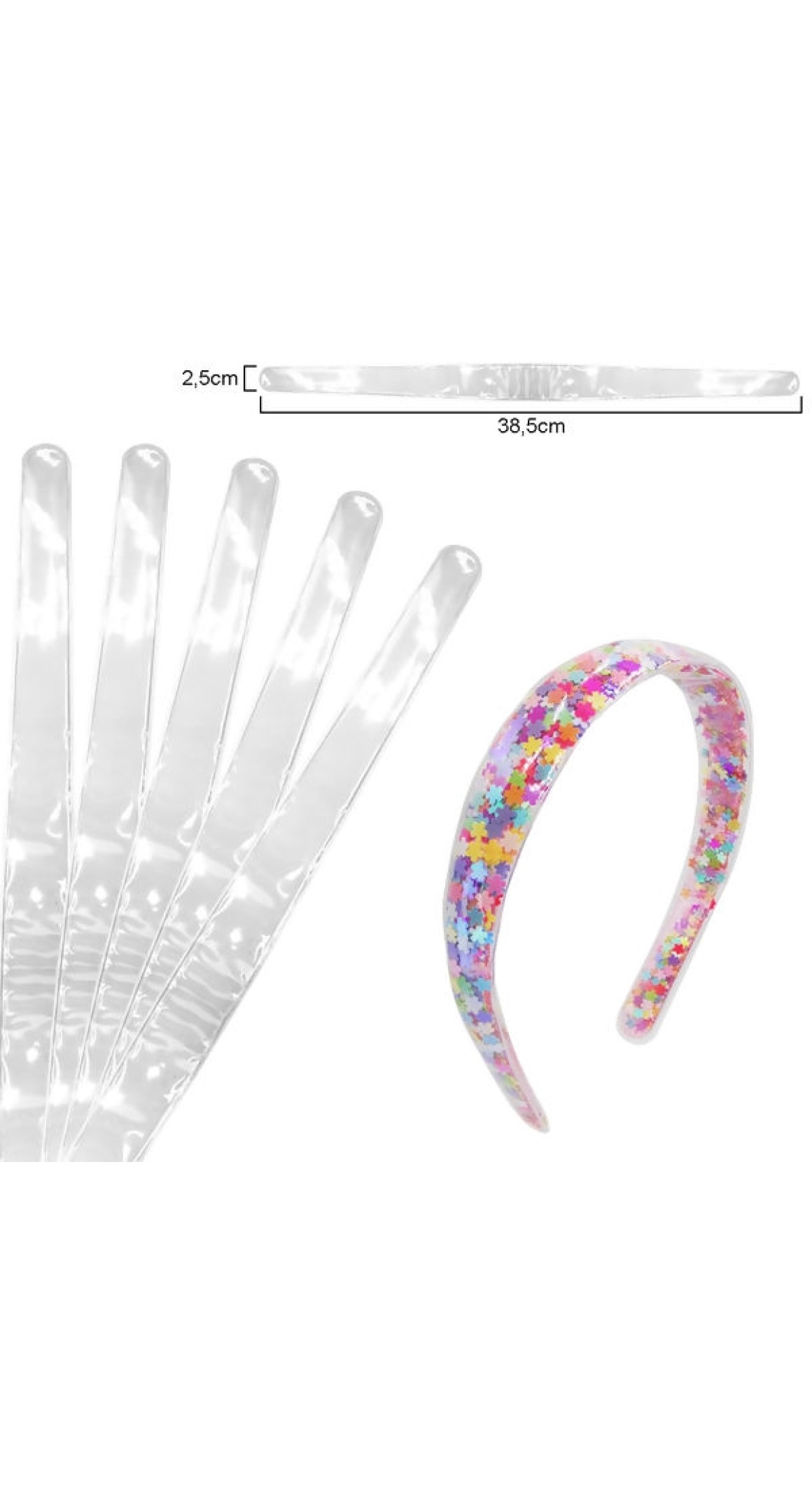 Plástico selado utilizado para encapar tiaras piscina, possui alta durabilidade e é possível fazer diversos modelos de tiaras com ele usando apliques, confetes e laços.